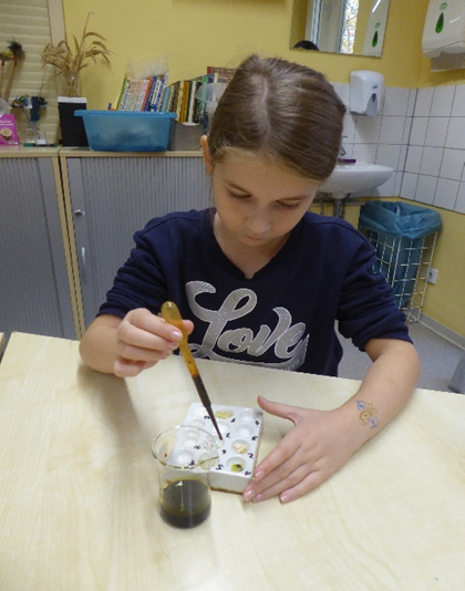 Außerdem bastelte jeder seinen Kartoffelkönig oder seine Kartoffelkönigin. Zum Abschluss aßen wir unsere selbst geschälten und gewürzten Kartoffelspalten mit Quark. Das war ein sehr leckeres Mahl und ein toller Abschluss unseres Wandertages.