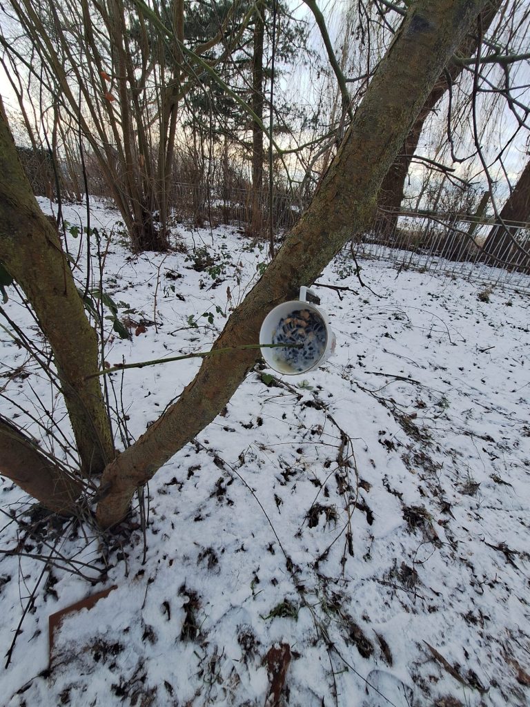 Die Klasse 1b hat am Freitag den Tisch im Schulgarten mit Leckereien für die Vögel gedeckt. Zusätzlich wurden weitere Futterstationen an den Bäumen eingerichtet. Im gesamten Schulgarten ist Vogelfutter verteilt. Die Schüler waren sehr darauf bedacht, dass die Vögel überall herankommen und in Ruhe speisen können. Ein großes Danke an die Eltern, die sich mit Geschirr und Futter beteiligt haben.